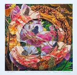 The edition of prints begins as photographs, which are digitally painted in Adobe Photoshop. The images are printed onto Fine Art Rag fine art paper using the highest quality archival inks. Each print is unique as the artist draws and paints onto each print with quality inks into the printed image. No two are the same. The artist’s hand echoes the patterns in the print and the gold, silver and bronze ink captures and reflects the light.